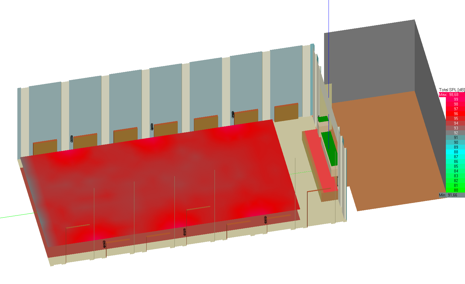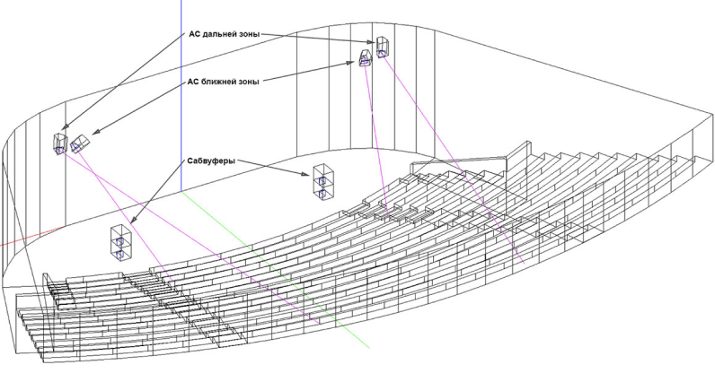 Стоимость расчета зависит в основном от сложности архитектуры зала. Чем больше деталей типа колонн, балконов, арок, сводов, тем большая трудоёмкость по созданию 3D-модели в EASE. От размеров зала стоимость не зависит, и расчёт огромного стадиона может оказаться дешевле, чем маленького театрика.
